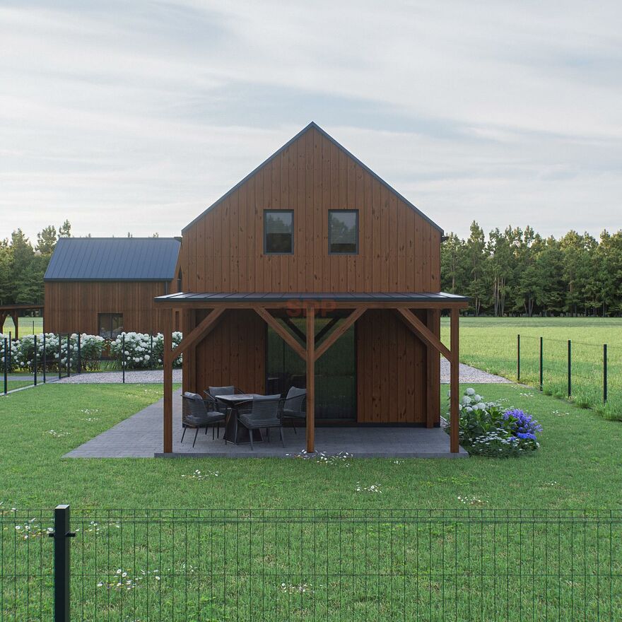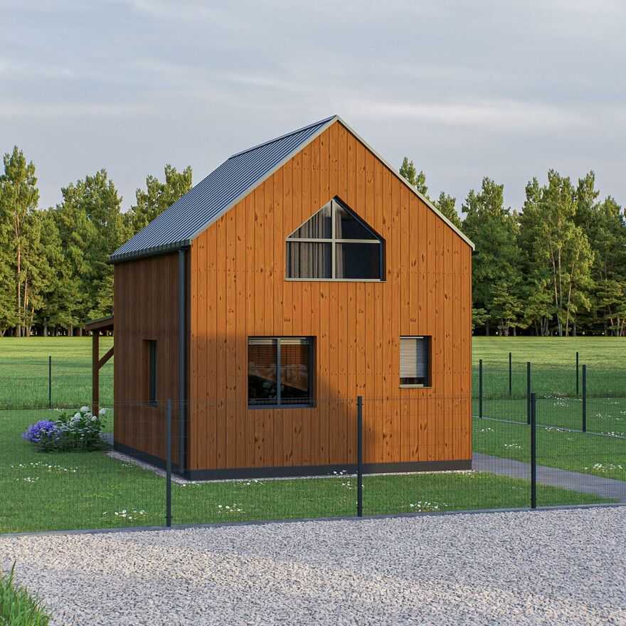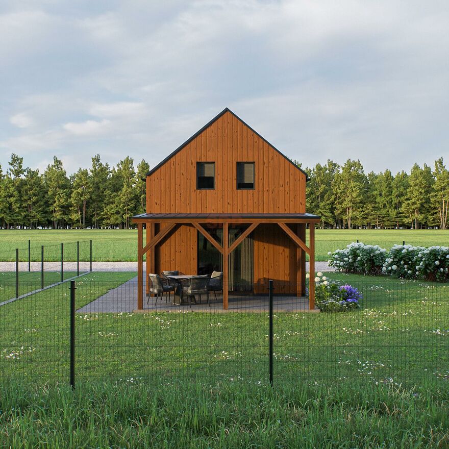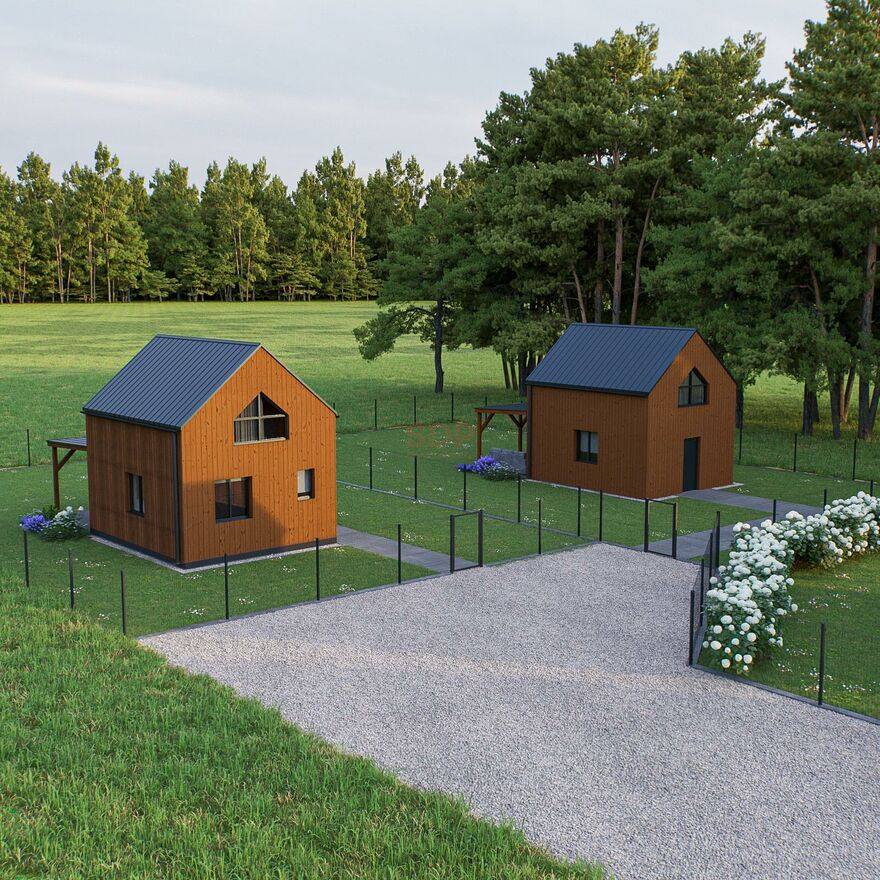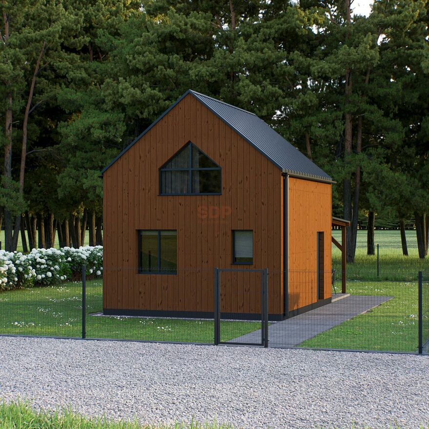 Powierzchnia domku: 50 m2 (parter: 30 m2, antresola: 20 m2, taras: 15 m2).