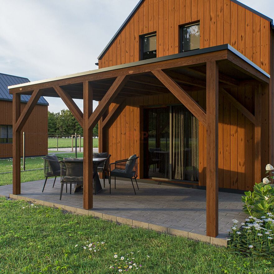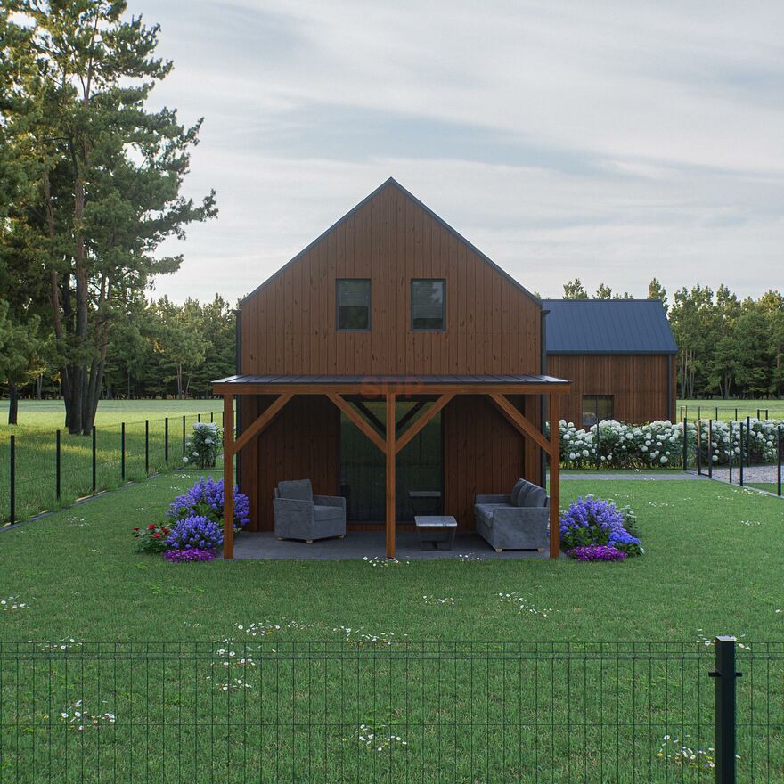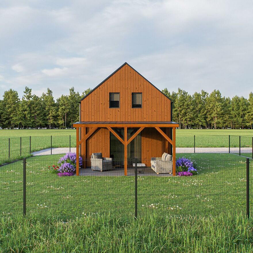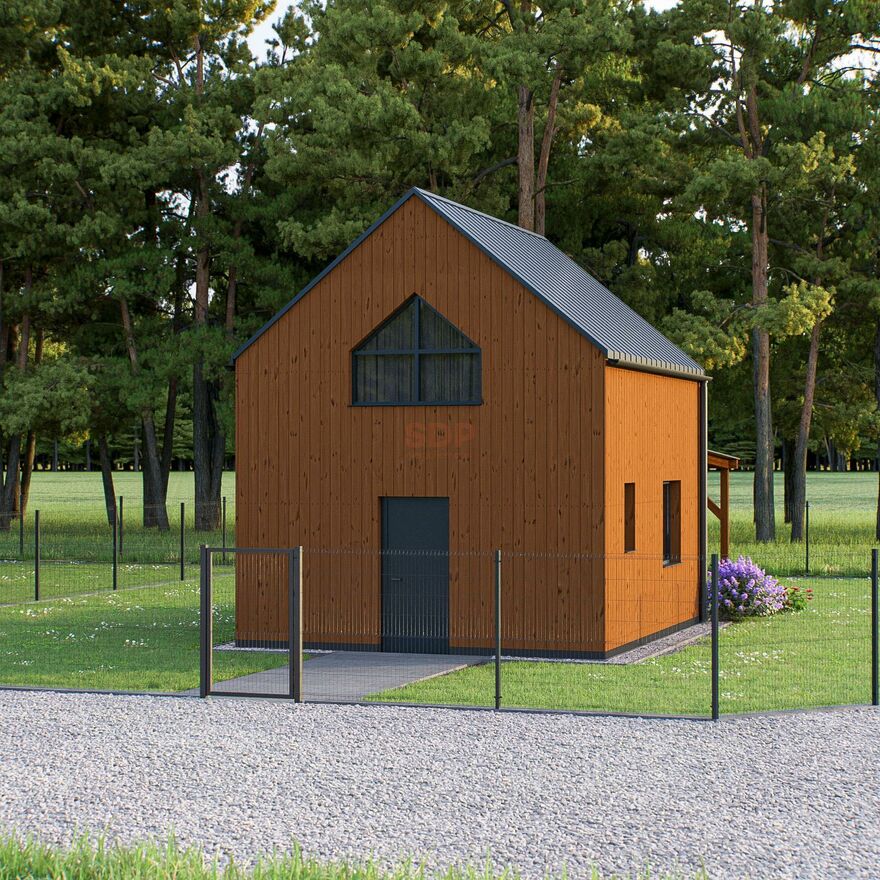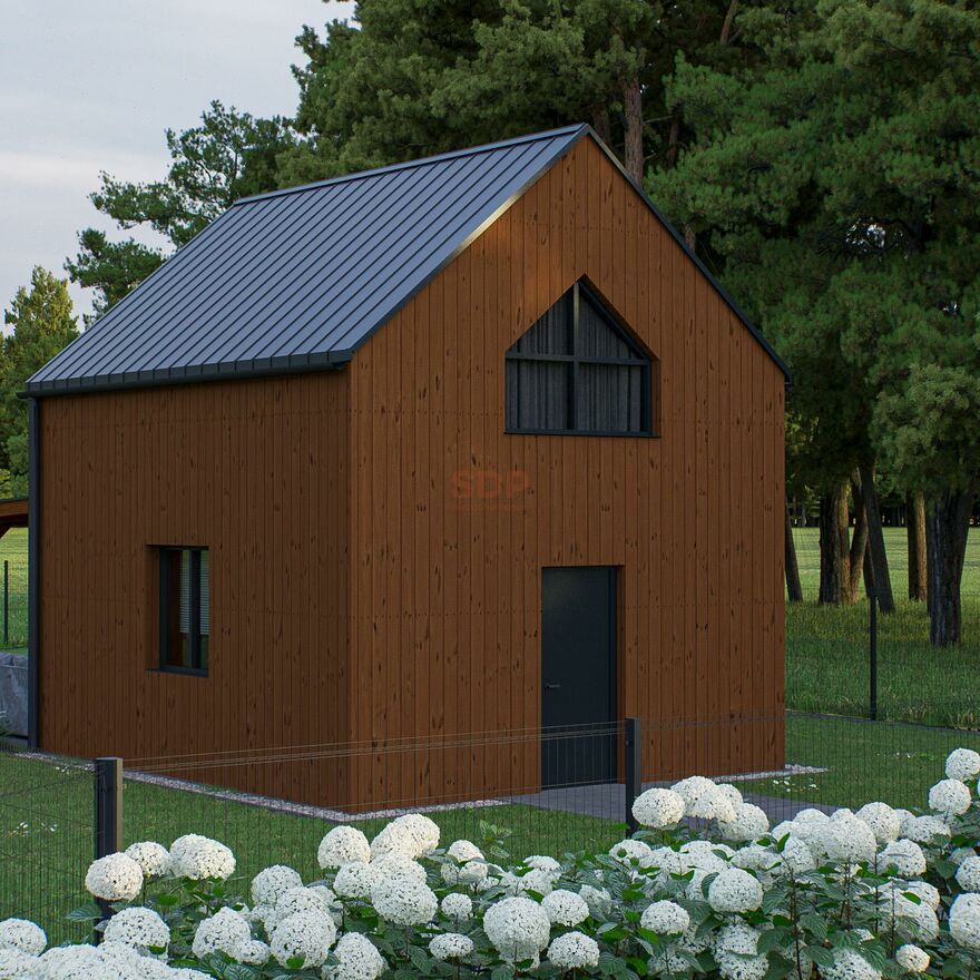 Powierzchnia domku: 50 m2 (parter: 30 m2, antresola: 20 m2, taras: 15 m2).